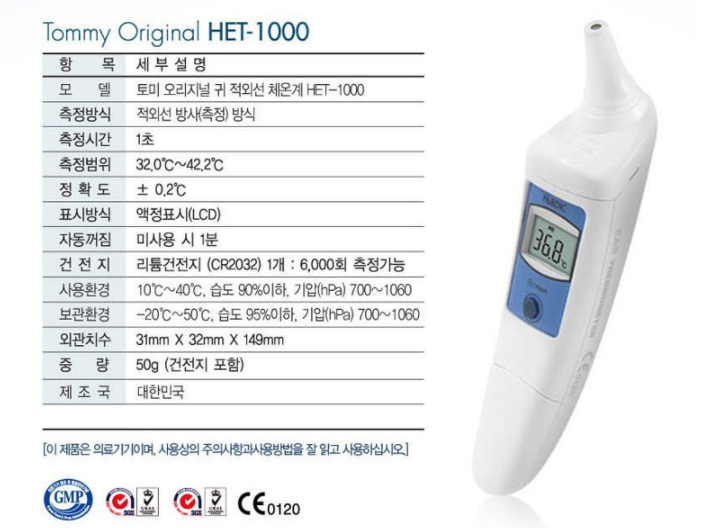 그래서 저렴하고 필터가 필요없는 휴비딕 체온계를 구입했습니다. 국내 제조에 건전지도 리튬건전지 사용으로 오래 사용할 수 있네요.
