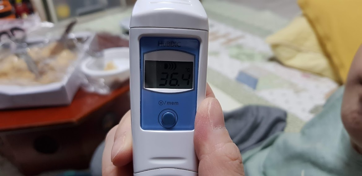 쪼꼬미가 어린이집에 다녀오면서 코를 훌쩍거리는 것 같아서 체온을 확인해 봅니다.