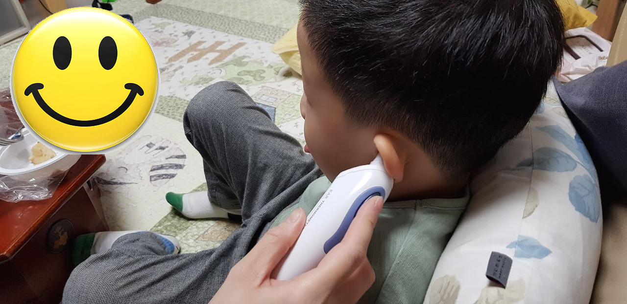 쪼꼬미가 어린이집에 다녀오면서 코를 훌쩍거리는 것 같아서 체온을 확인해 봅니다.