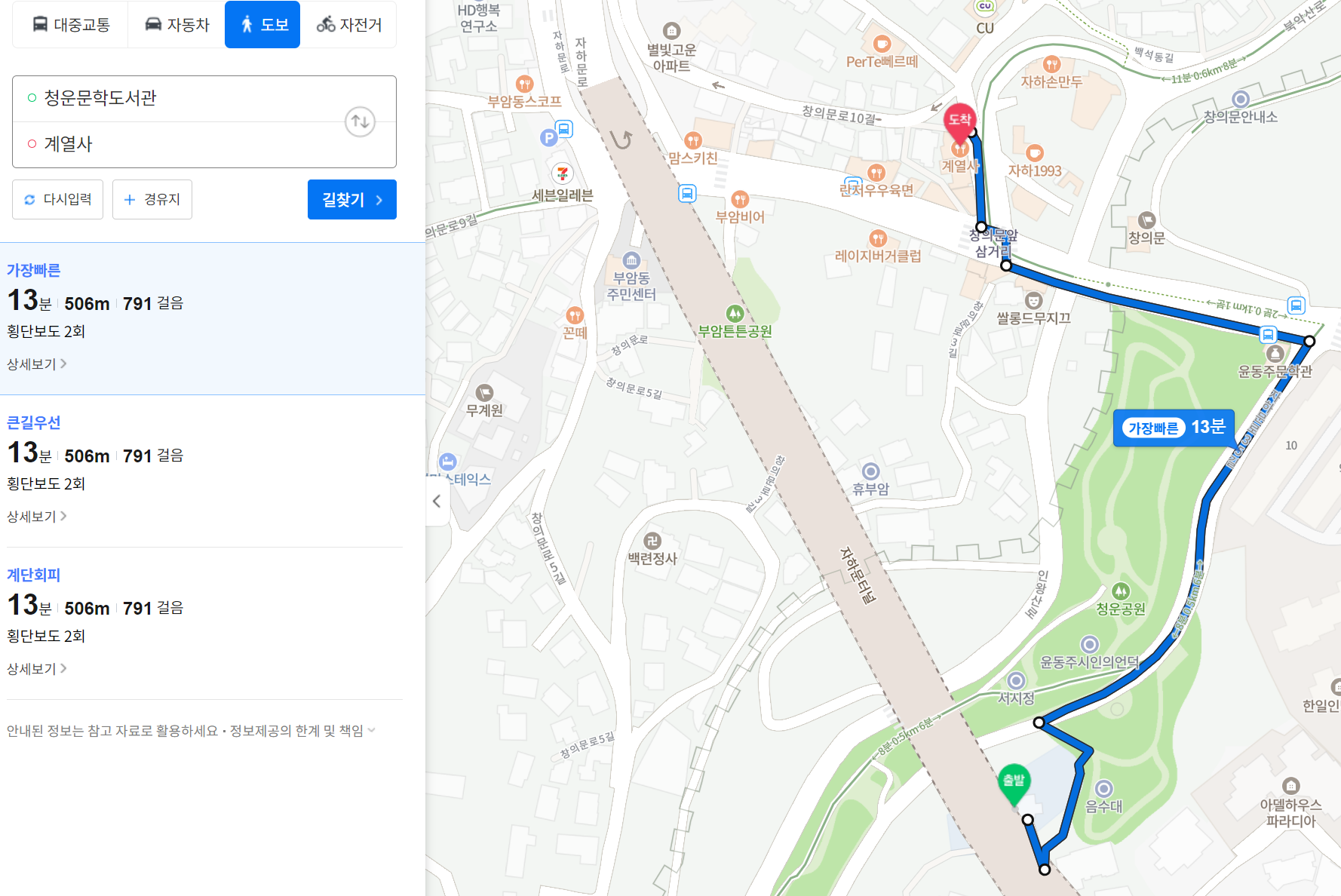 2. 청운문학도서관 대중교통 이용방법 및 주차