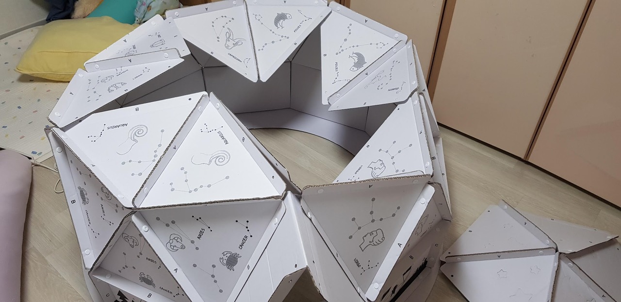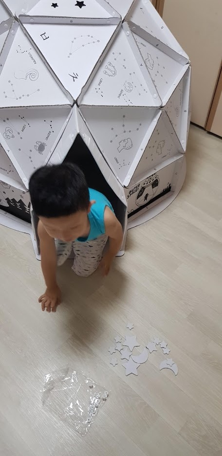 그런데 쪼꼬미 엄마가 보더니 이렇게 더러운 상자들을 어디서 주워왔냐고 하면서 버리라고 하네요. 그러면서 쪼꼬미에게 맞는 집을 주문했습니다. 우주안에 있는 느낌을 줄 수 있는 키즈스페이스입니다.
