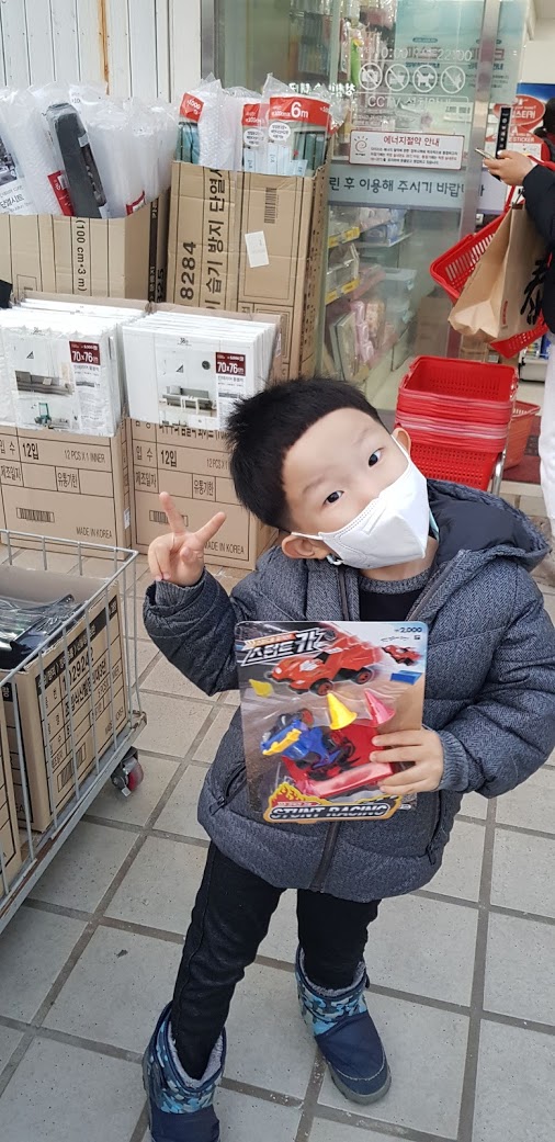 좋아하는 자동차는 고모네서 많이 받았기에 장난감을 사달라고 해도 잘 사주지 않았고 마트에 가면 눈치보며 장난감을 고르다가 가자고 하면 아쉽게 그냥 갔었는데 2000원 짜리 자동차에 신나서 뛰는 모습에 좀 짠합니다.
