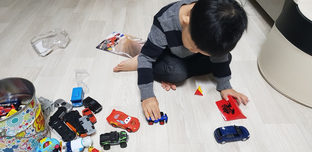 자동차 놀이는 같이 해야 합니다.