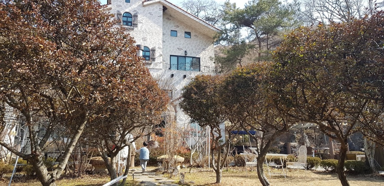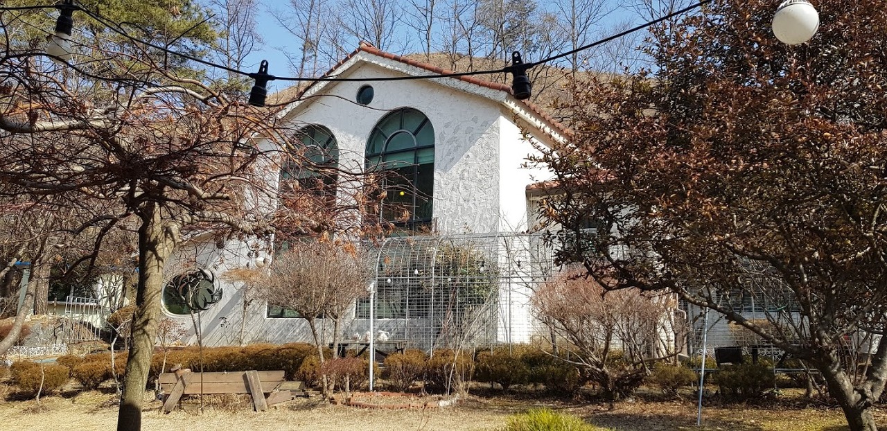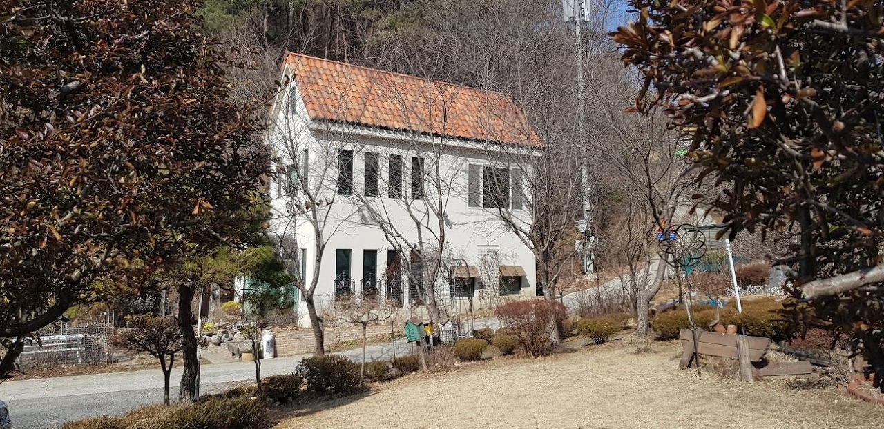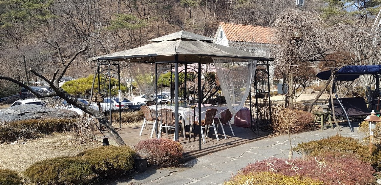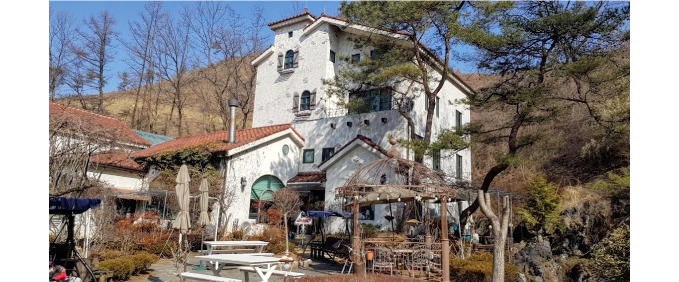 그런데, 금산군 복수면에 있는 이 식당은 유럽식으로 건물을 지어 참 예쁩니다. 차로 운전하면서 조그마한 산길을 꾸불꾸불 올라가면 한 참 있다가 예쁜 집이 나옵니다. 처음 갈 때는 도저히 식당이 나올 것 같지 않은 산길로 가니 이 사람이 나를 유괴하려고 하나(?) 생각할 듯한 곳입니다.