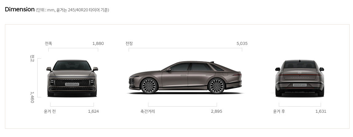 디올 뉴 그랜저 하이브리드는 각 그랜저로 불렸던 1 세대와 그랜저 XG 를 계승한 디자인으로 스타리아 앞 디자인과도 닮아있습니다. 전체 길이는 5m에 달합니다.