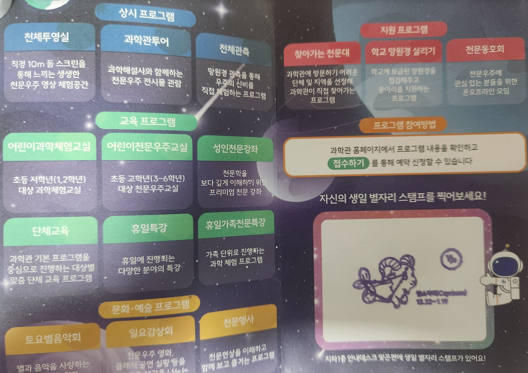 * 영상 : 천문우주영상 상영 / * 해설 : 밤하늘 별자리 또는 영상 해설