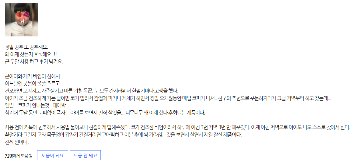 쪼꼬미는 꾸준하게 하루에도 몇 번씩하고 있습니다. 코가 막혀서 숨을 못 쉬어서 잠을 제대로 못 자는 것은 많이 나아진 것 같습니다. 더 지켜보려고 합니다.