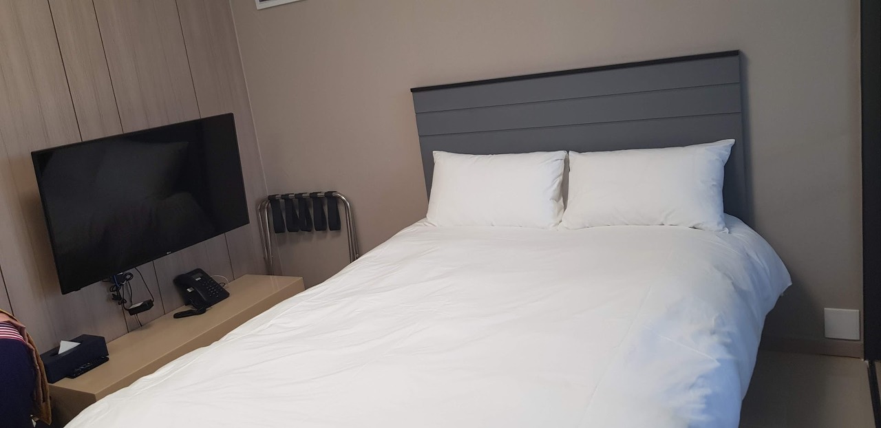 디럭스 오션 더블 룸은 이런 침대가 2개 있습니다.