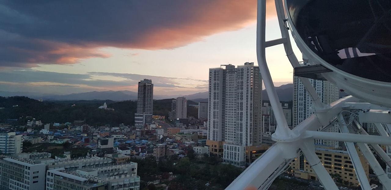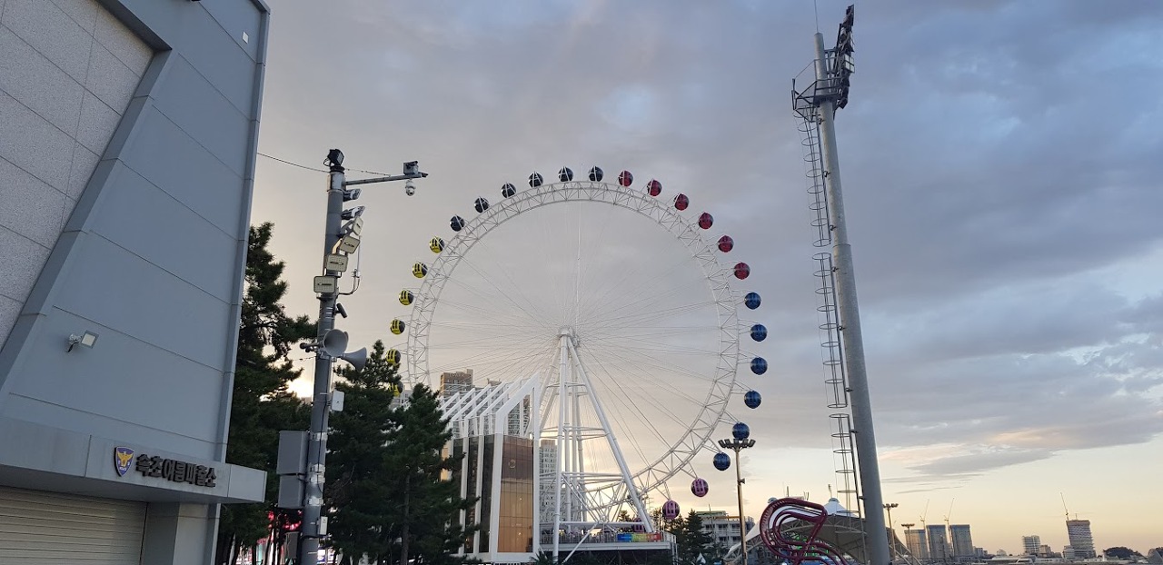 숙소로 돌아가는 길 대관람차에 불이 들어온 것이 보입니다.
