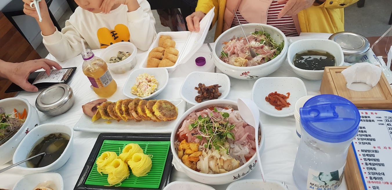 회덮밥 2인분과 물회 2인분 오징어순대 1인분입니다. 저같이 회를 좋아하지 않는 분들도 양념맛으로 쉽게 드실 수 있을 것 같아요.
