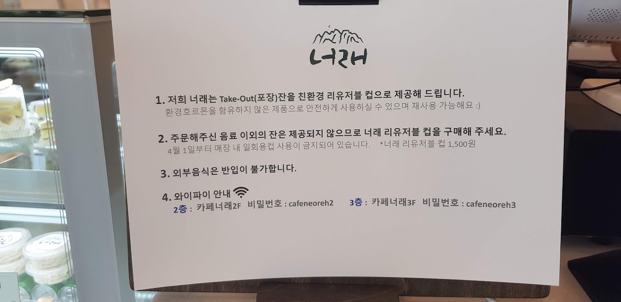 너래라는 말은 넓고 큰 바위라는 뜻이라네요. 카페 너래 1층에는 막국수를 팔아서 잘 못 온 줄 알고 지나칠 수 있으니 주의하세요.