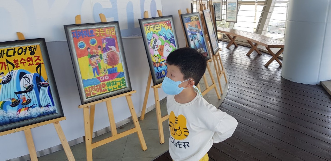 등대 안에 초등학생들이 그린 여러 포스터가 있네요.