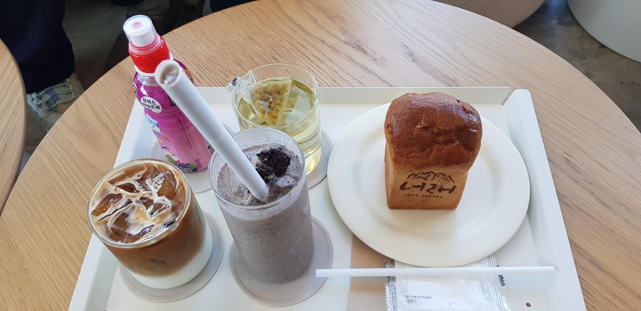 카페가 넓고 사람들이 별로 없어서 쪼꼬미와 같이 숨바꼭질을 하며 뛰어다니다가 직원에게 혼났습니다. T.T