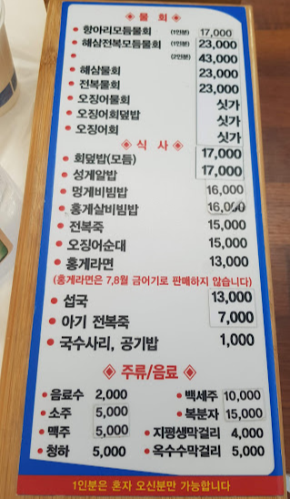 회덮밥 2인분과 물회 2인분 오징어순대 1인분입니다. 저같이 회를 좋아하지 않는 분들도 양념맛으로 쉽게 드실 수 있을 것 같아요.