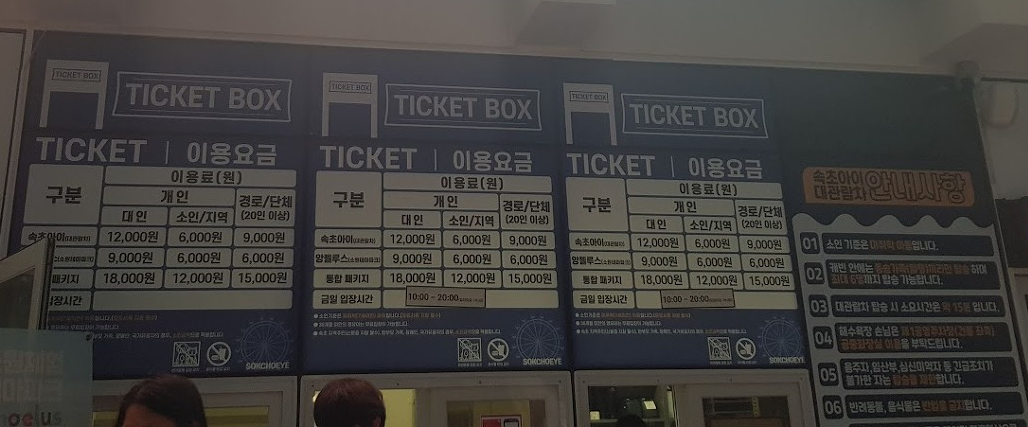 대인 12000원, 소인 6000원인데 65세 이상이면 신분증을 제시하시고 9000원에 탈 수 있어요. 어린이도 가족관계증명서 같은 서류를 핸드폰으로 보여줘야 합니다. 나이 확인합니다.