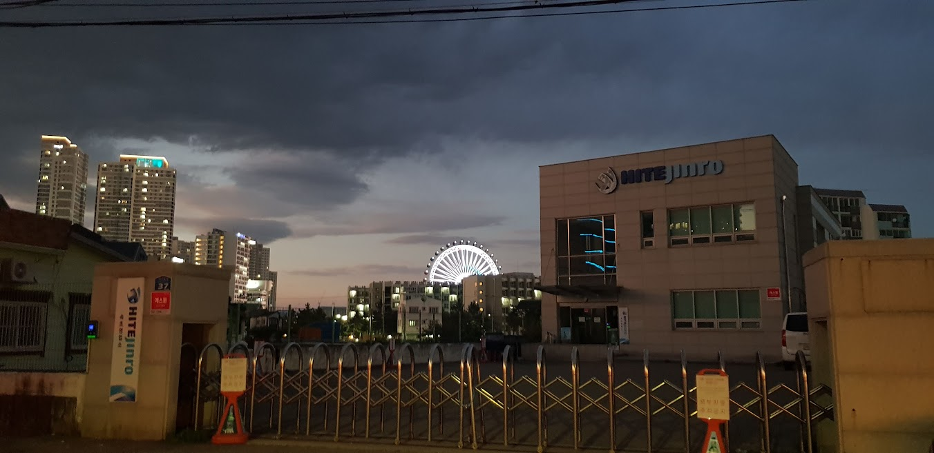 숙소로 돌아가는 길 대관람차에 불이 들어온 것이 보입니다.