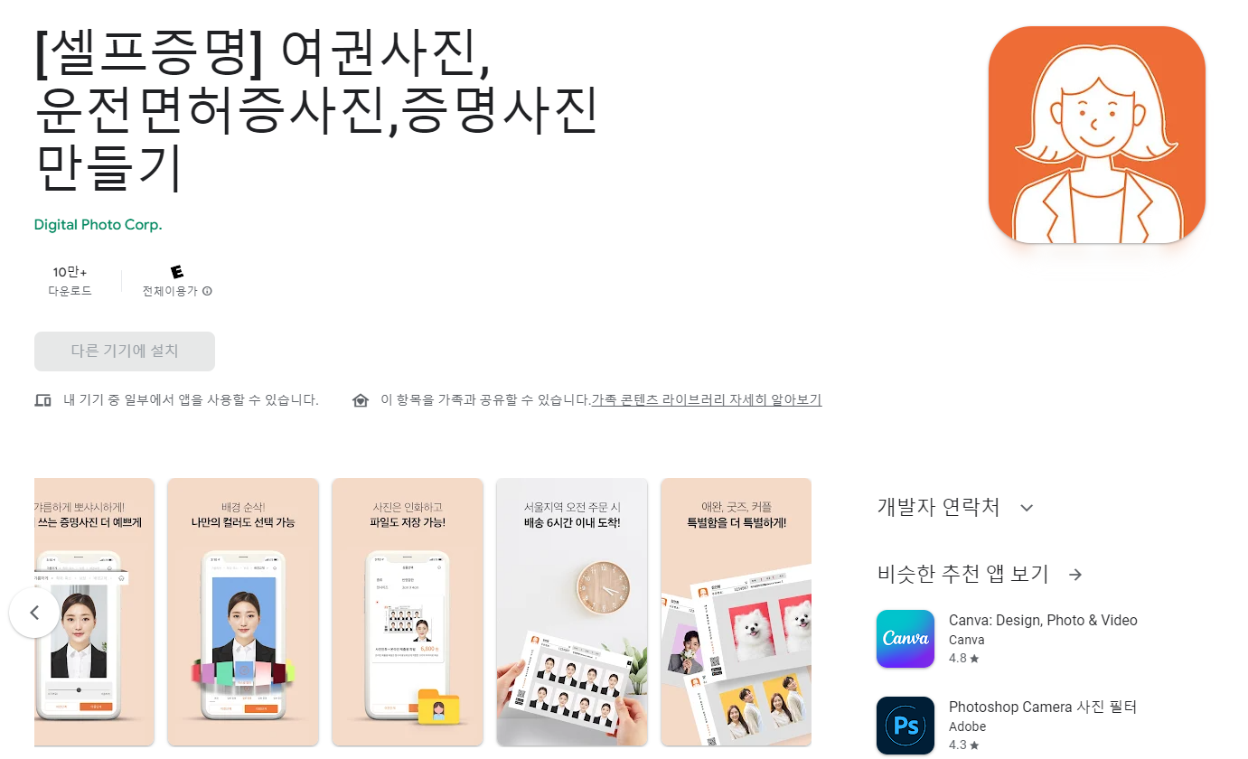 여권사진을 위해 셀프증명이라는 앱을 이용했습니다. (셀프증명은 여권 사진 통과하기 힘드네요.)