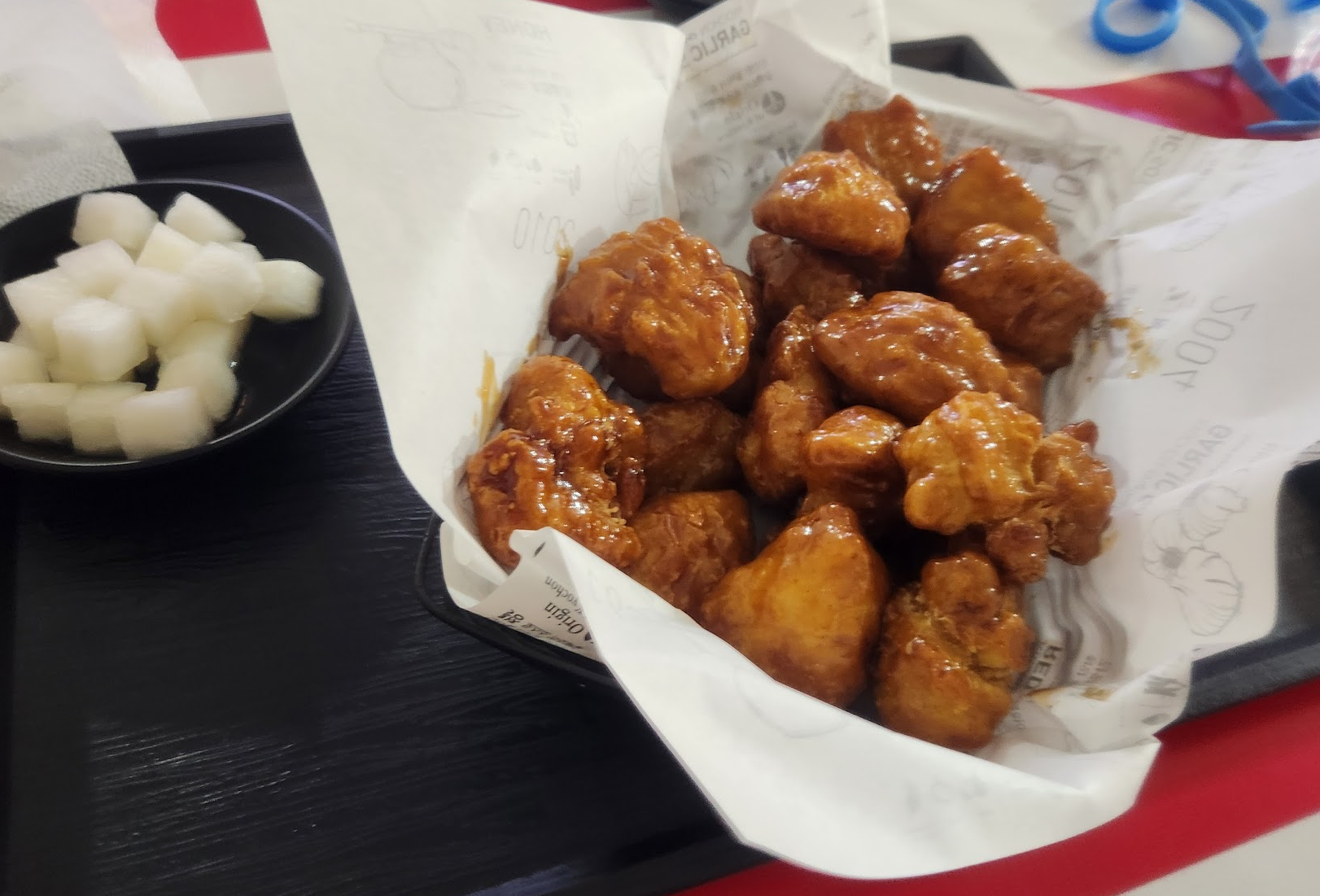 저희는 점심시간이 한참 지나서 교촌 허니순살을 시켜서 먹었답니다.