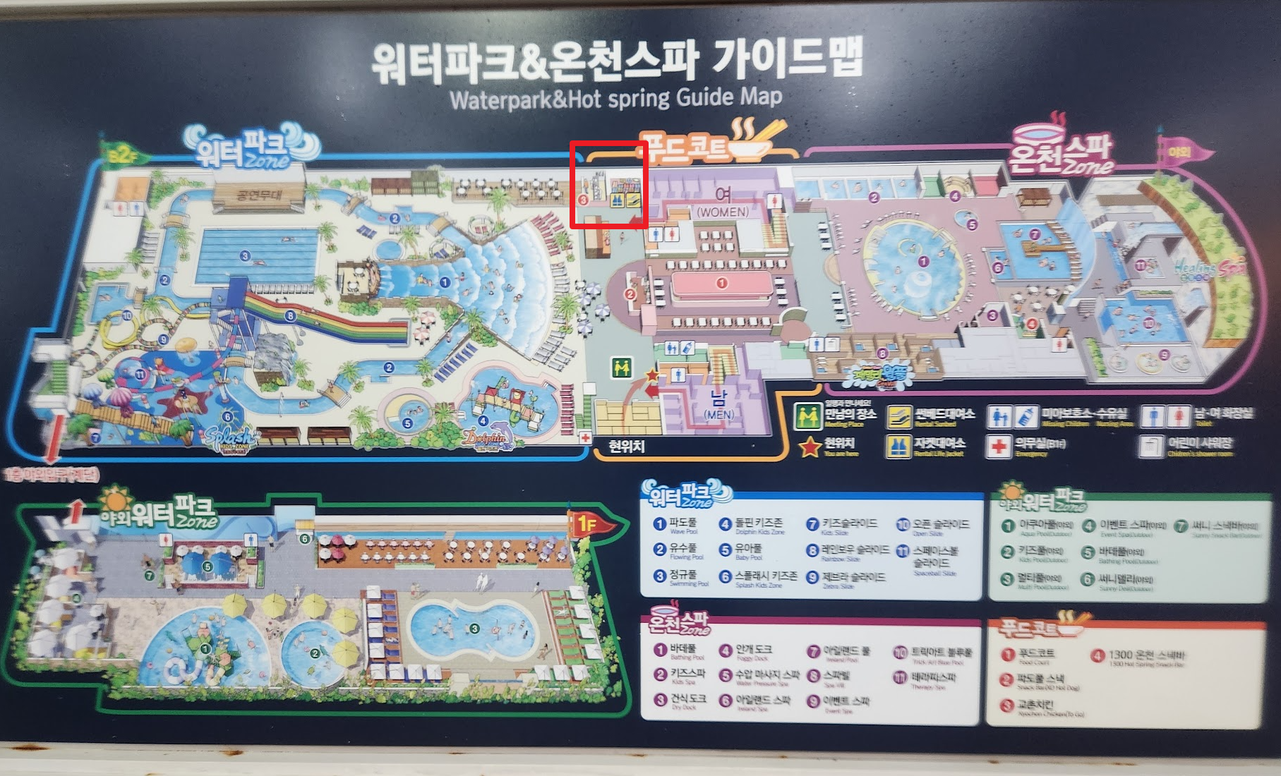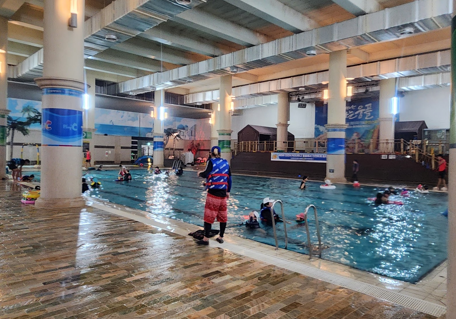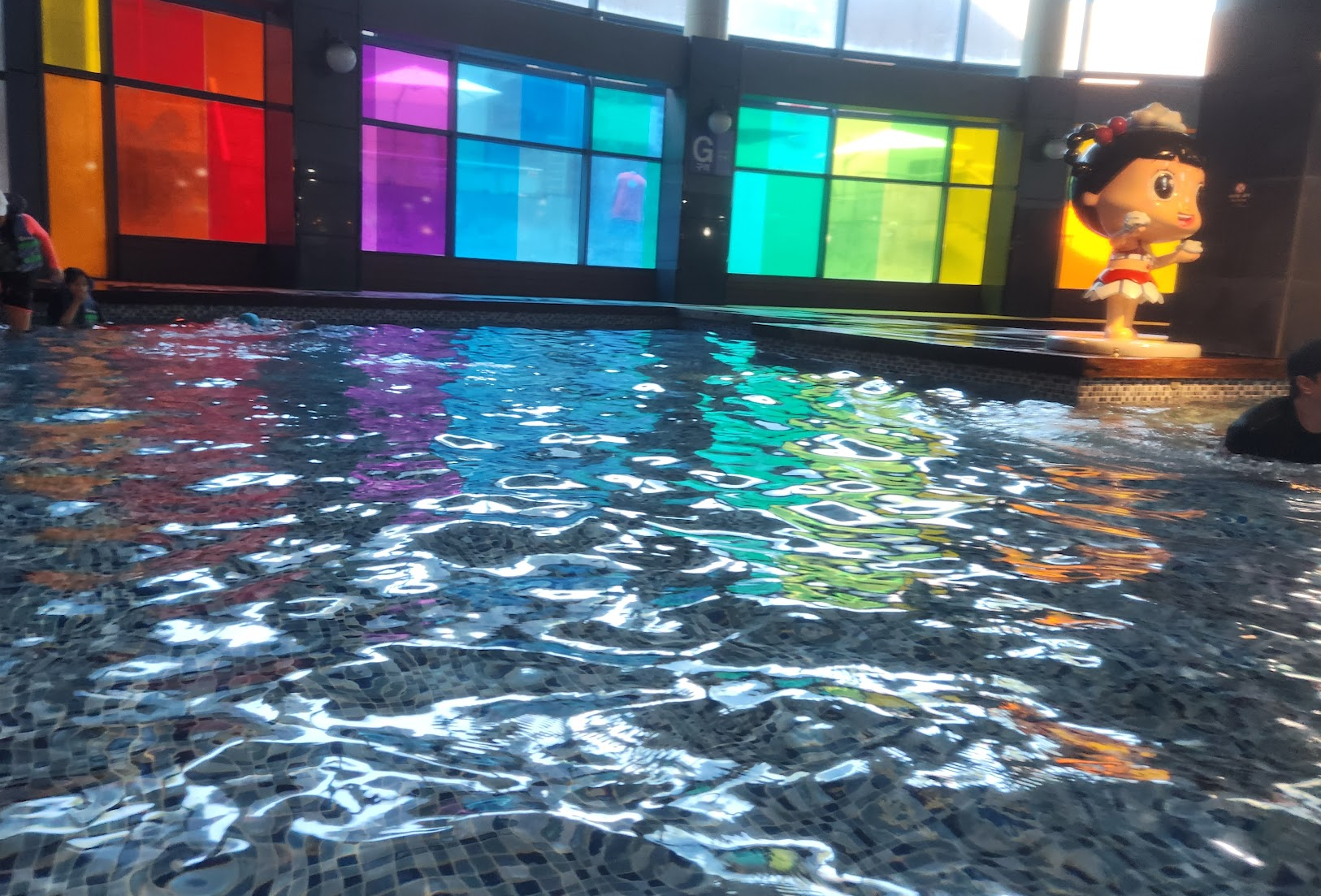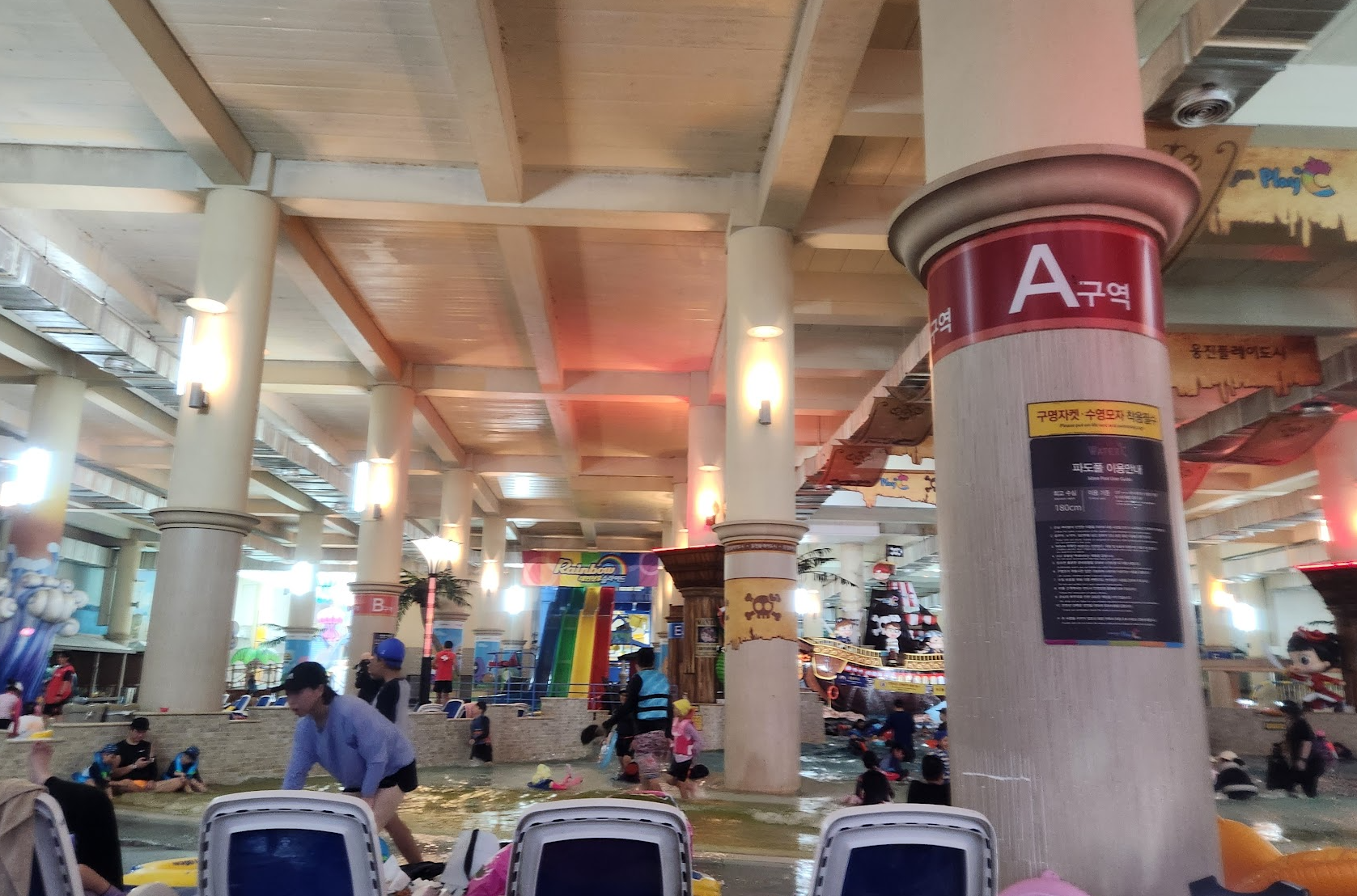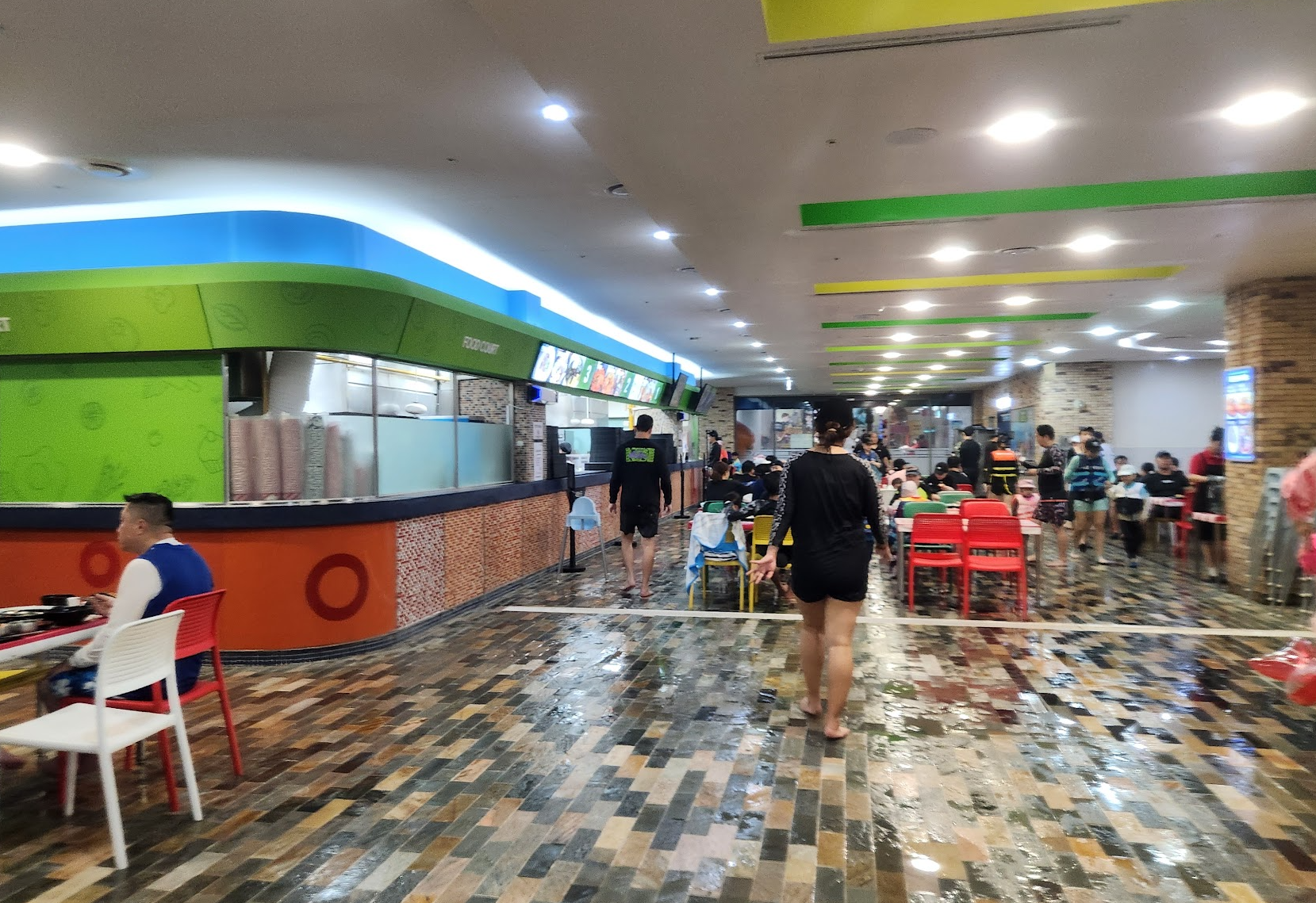 음식물 반입 : 기본적으로 음식물 반입 금지일텐데 어디에도 외부 음식물 금지라는 말은 못 봤습니다. 내부에는 가게가 많이 있고 푸트코트도 있어요. 반건조 오징어 냄새가 솔솔 풍겨서 먹고 싶기도 했습니다. 수영하면서 놀면서 집에서 가져온 음식들을 자연스럽게 꺼내서 먹는 분들을 많이 보았습니다.