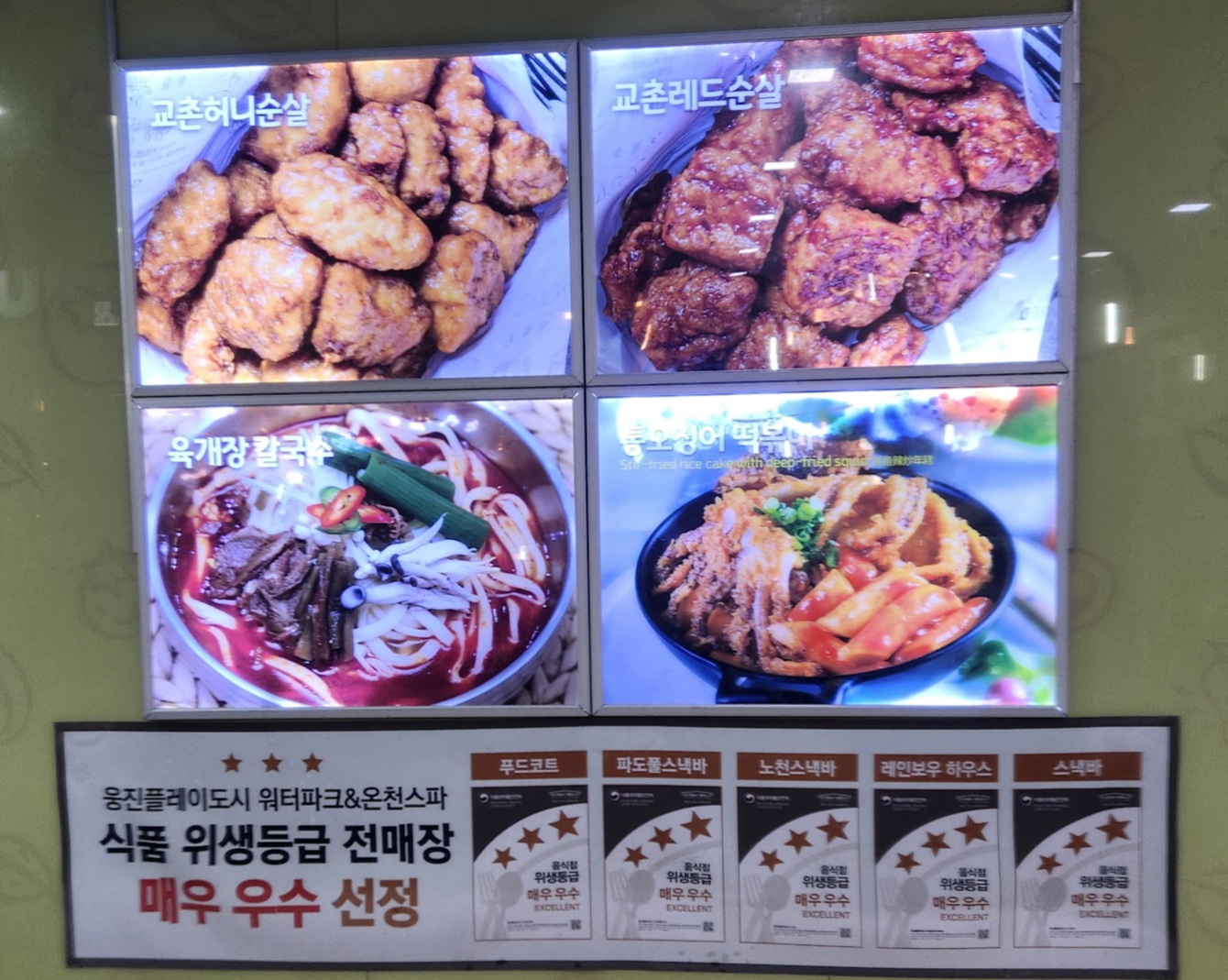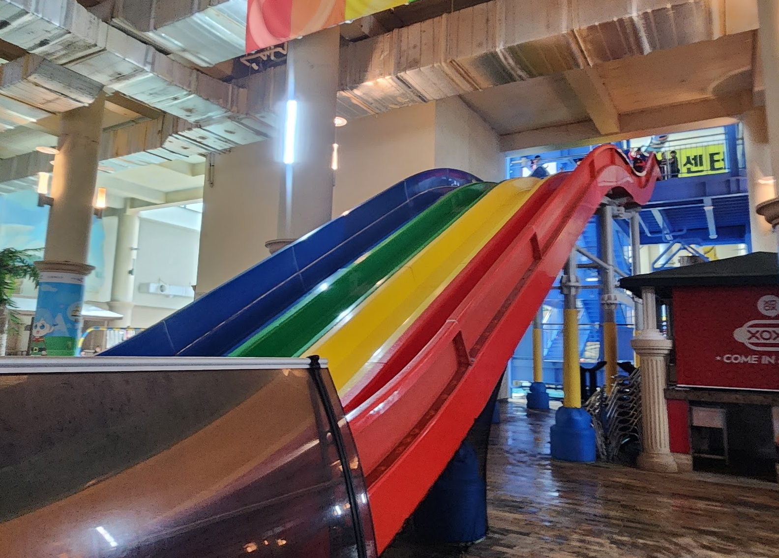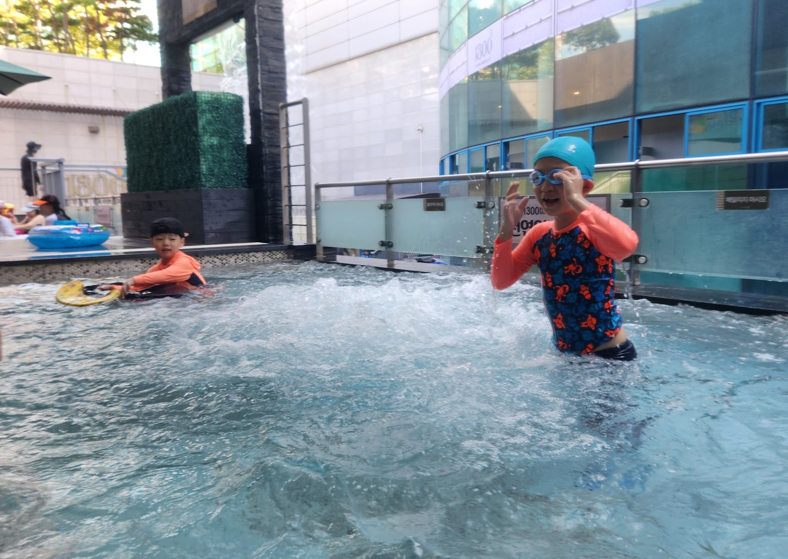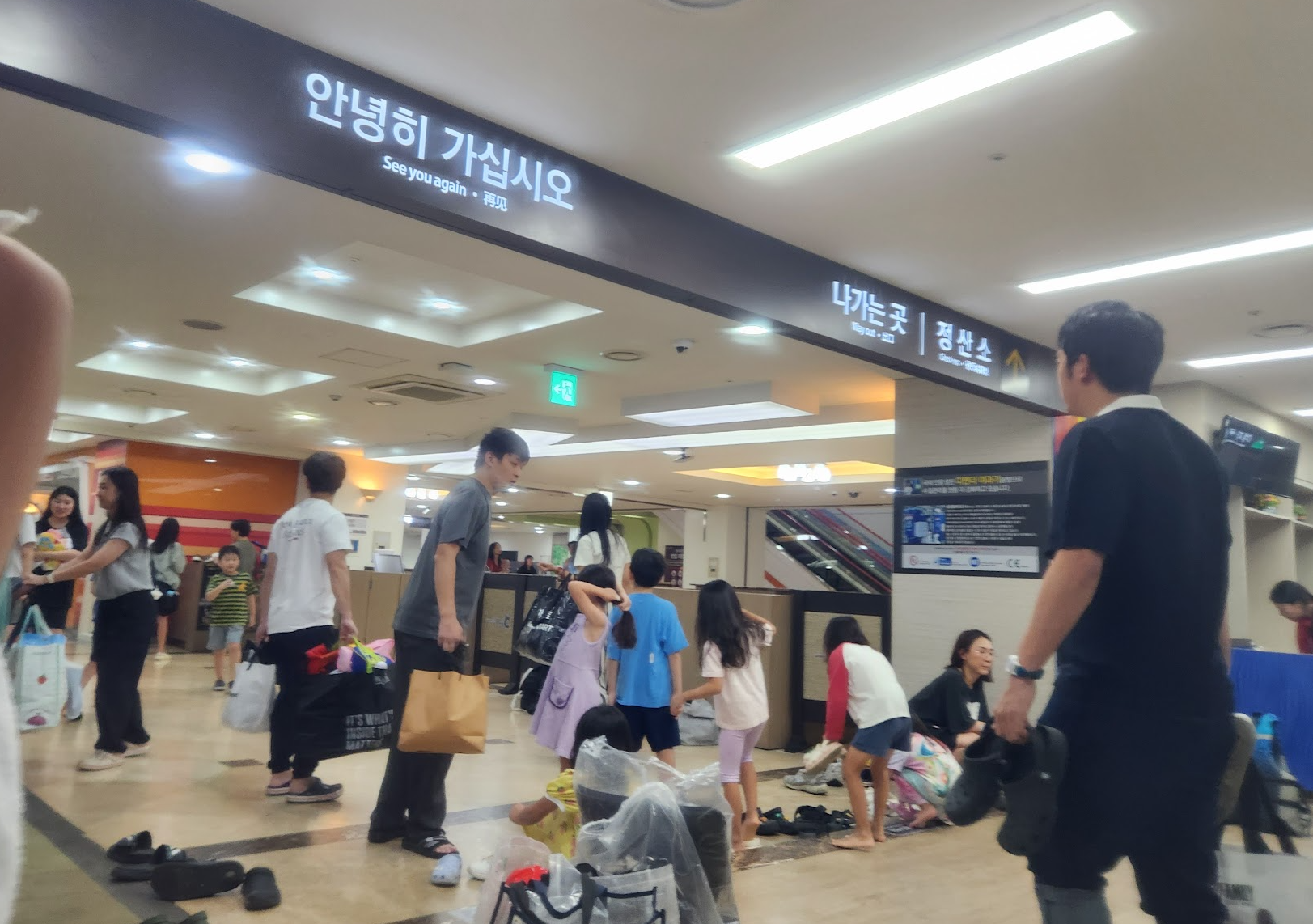 음식물 반입 : 기본적으로 음식물 반입 금지일텐데 어디에도 외부 음식물 금지라는 말은 못 봤습니다. 내부에는 가게가 많이 있고 푸트코트도 있어요. 반건조 오징어 냄새가 솔솔 풍겨서 먹고 싶기도 했습니다. 수영하면서 놀면서 집에서 가져온 음식들을 자연스럽게 꺼내서 먹는 분들을 많이 보았습니다.