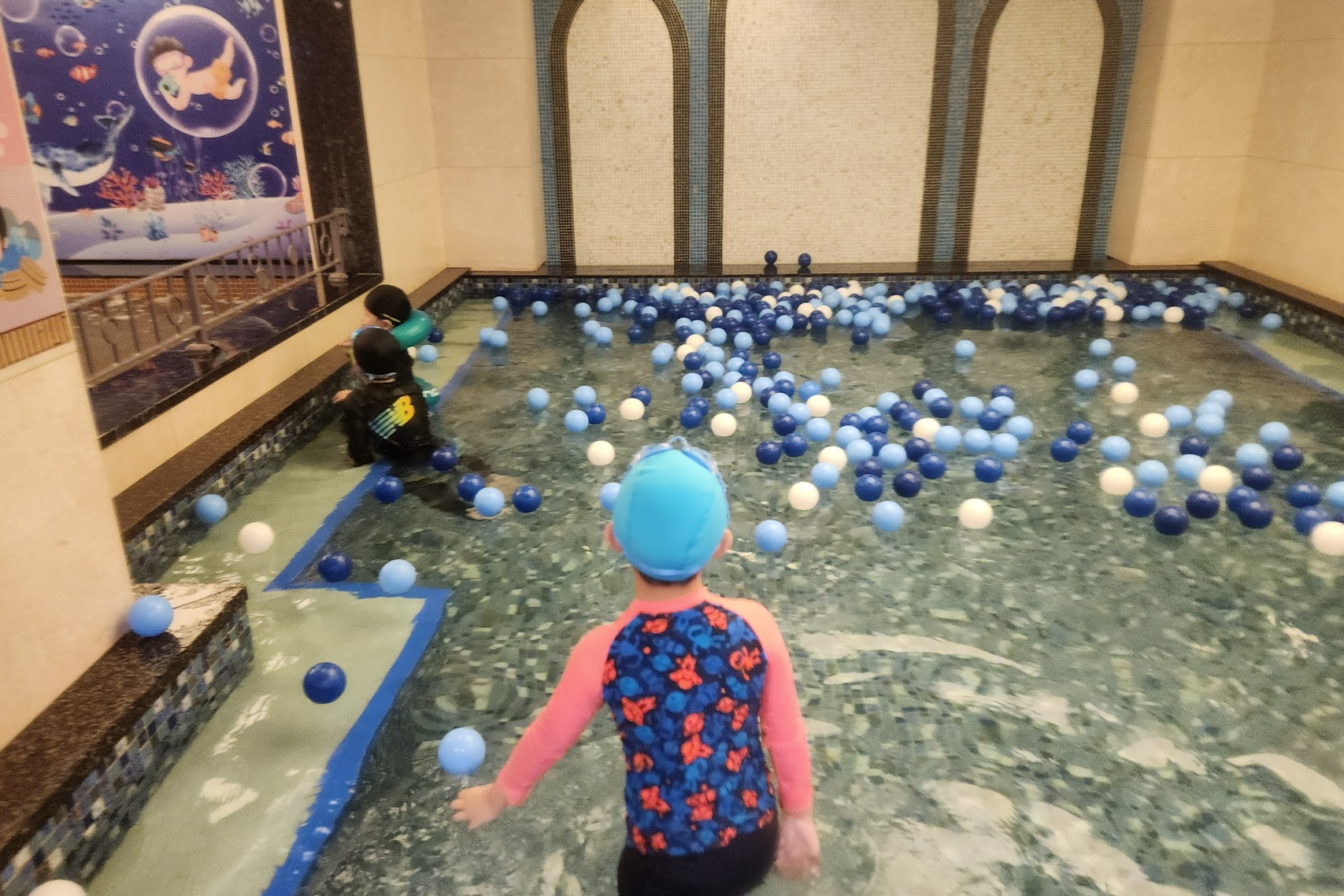 어린이들이 놀 수 있도록 60cm 높이라 너무 좋습니다. 쪼꼬미가 열심히 수영연습을 했어요.