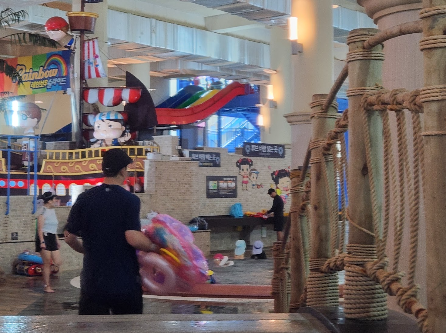튜브를 가지고 계신다면 공기를 주입해야 하는데 해적선 오른쪽에 튜브 공기 주입하는 곳이 있습니다. 처음에 저는 이것을 몰라 입으로 불고 있었습니다.