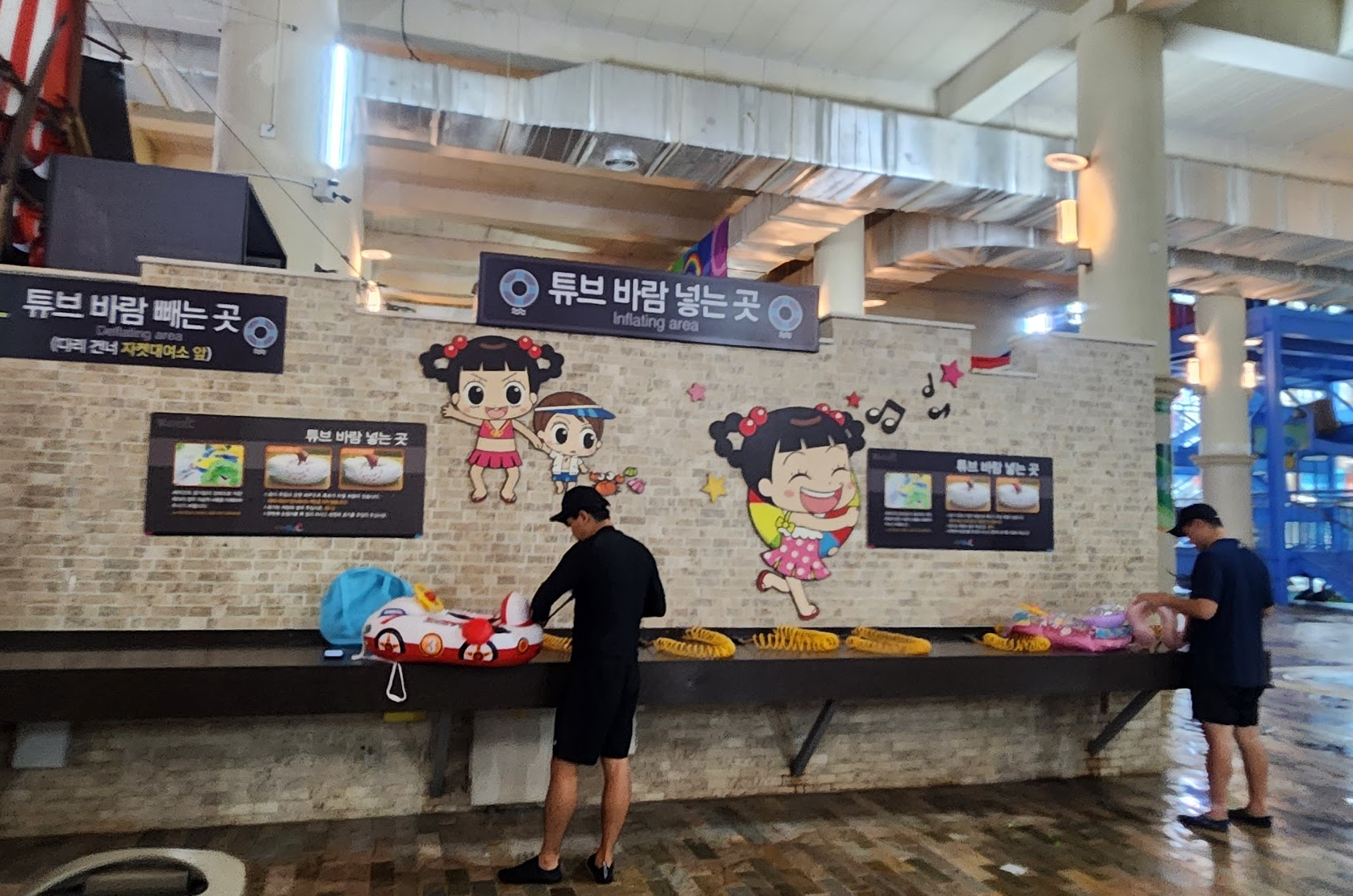 아 튜브 공기를 빼는 곳은 편의시설 빌리는 곳 근처입니다.