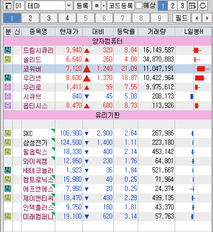 대장주가 올라갈 때 맞춰서 후속주를 매매하면 되는 것이니 매우 쉽게 느껴질 수도 있지만, 한 테마에서 대장주와 2,3 등주를 찾는 것이 쉽지 않다. 매일 특징주를 같은 테마와 섹터별로 분류하여 정리하는 습관을 들이면 좋다.