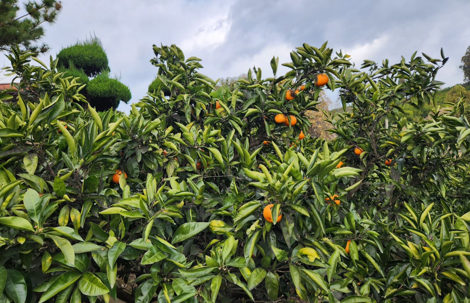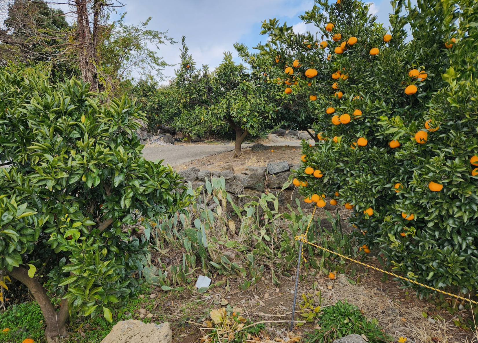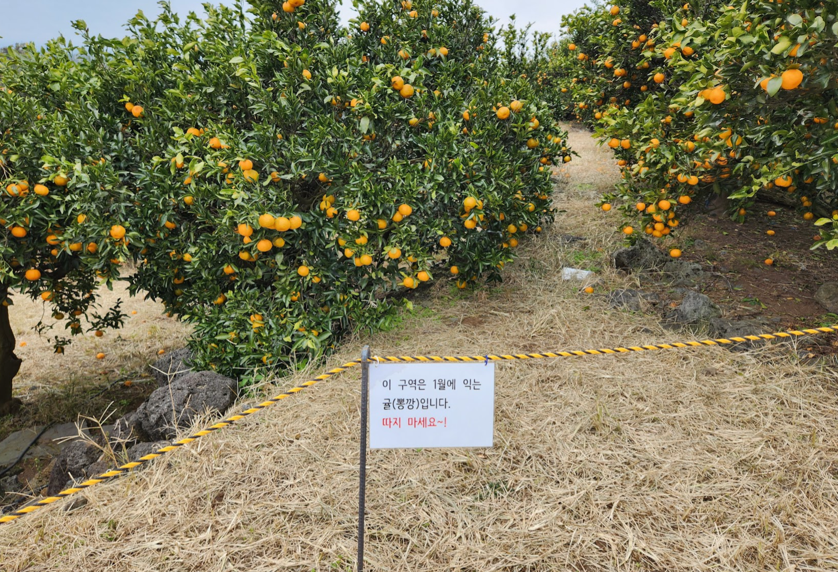 넘어 가지 말라고 쳐 놓은 노란 줄 안에는 귤과 비슷하지만 조금 다른 뽕깡(위키백과에는 병감이라고 함 https://ko.wikipedia.org/wiki/%EB%B3%91%EA%B0%90)이 있었습니다.
