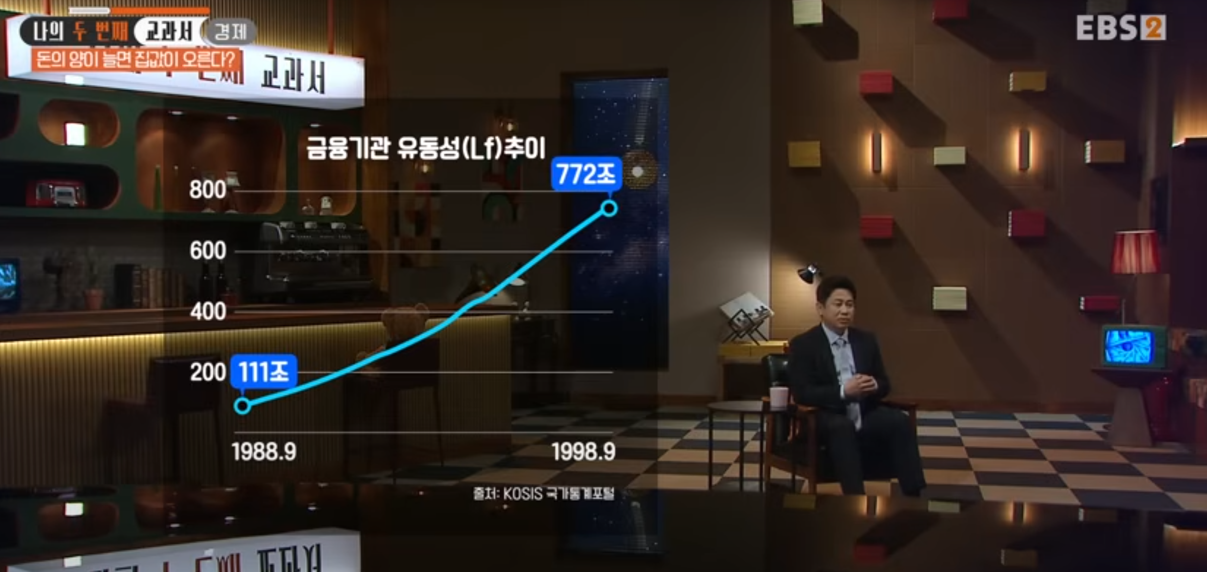 하지만, 중요한 사실! 돈이 많이 풀린다고 해서 항상 집값이 오르는 건 아니야. 예를 들어 볼게. 1988년에는 우리나라에 111조 원의 돈이 돌고 있었어. 그런데 10년 후, 1998년에는 무려 771조 원으로 늘어났단다. 엄청나게 많은 돈이지? 그럼 집값도 7배나 올랐을까? 아니야, 실제로 집값은 40% 정도만 올랐어.