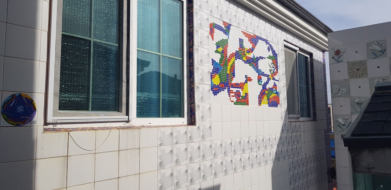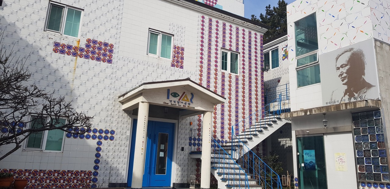 통영 바다를 상징하는 등대와 사찰의 탑을 접목했으며 세라믹 타일 7천500장에 그의 작품을 담아 외벽을 장식해 화사하고 미려합니다.