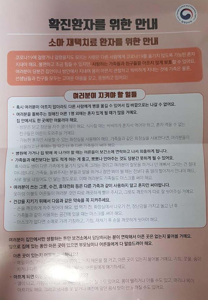 확진환자를 위한 안내(소아 재택치료 환자를 위한 안내)