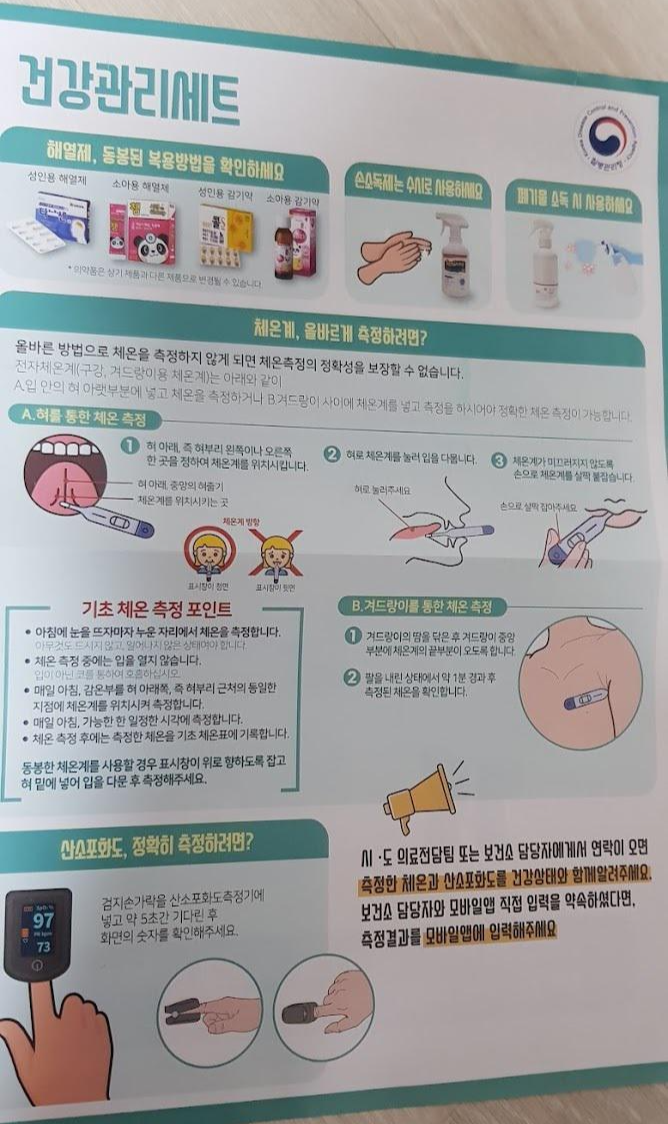 쪼꼬미가 코로나 3일 째 쯤에는 소아용 건강관리세트가 왔습니다.