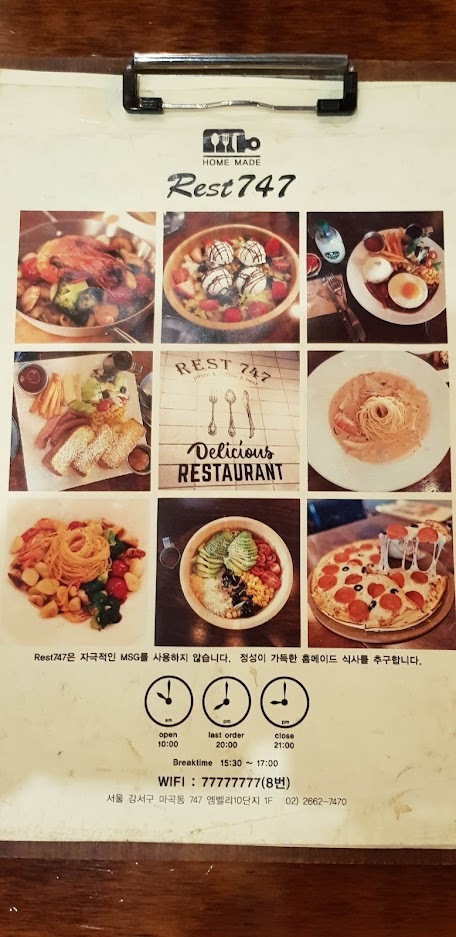 아내님께서 자주 크림파스타를 먹고 싶다고 했는데 방화동에는 맛있는 파스타집이 없네요. 그래서 싸고 괜찮은 마곡 스파게티집을 알아보던 중 REST 747이라는 곳을 찾았습니다.