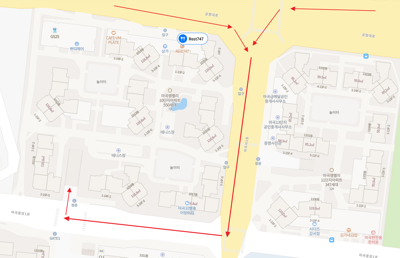 RES747은 마곡 10단지쪽에 있습니다. 레스토랑은 길가에 있지만 주차를 하시려는 분들은 공항대로에서 10단지쪽으로 꺾어 들어가셔서 아파트 정문쪽으로 가야합니다. 그리고 경비하시는 분께 REST747 간다고 말씀 드리시고 들어가셔야 합니다. 지하로 쭉 들어가시면 상가 주차장이 있습니다.